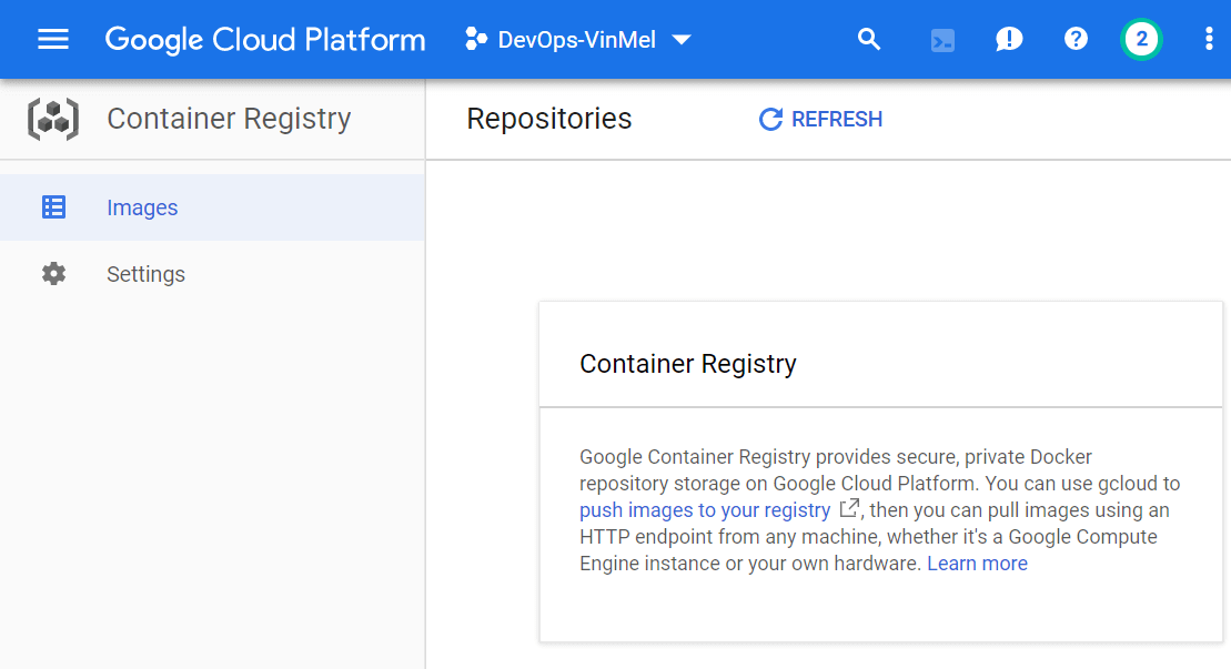If you open Container Registry for first time, you will see a blank list as above as you haven’t setup anything inside. Let’s pull some image from docker hub ( hub.docker.com ) and store it in our private GCR. For testing I am pulling some sample images like gogs . (Gogs is simple self-hosted Git service with Web GUI; Learn more )