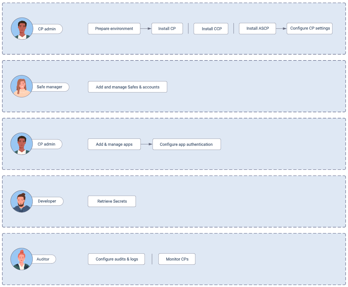 CP stands for Credential Provider in CyberArk, a tool that can securely retrieve passwords and applications’ secrets from a Vault. It can be installed on servers running applications, or on the developer machine. The Credential Provider offers a variety of features, including: