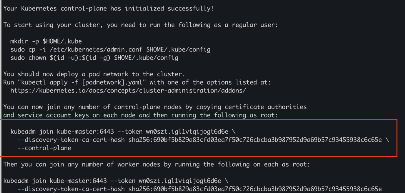 sudo kubeadm init — control-plane-endpoint kube-master:6443 — pod-network-cidr 10.10.0.0/16