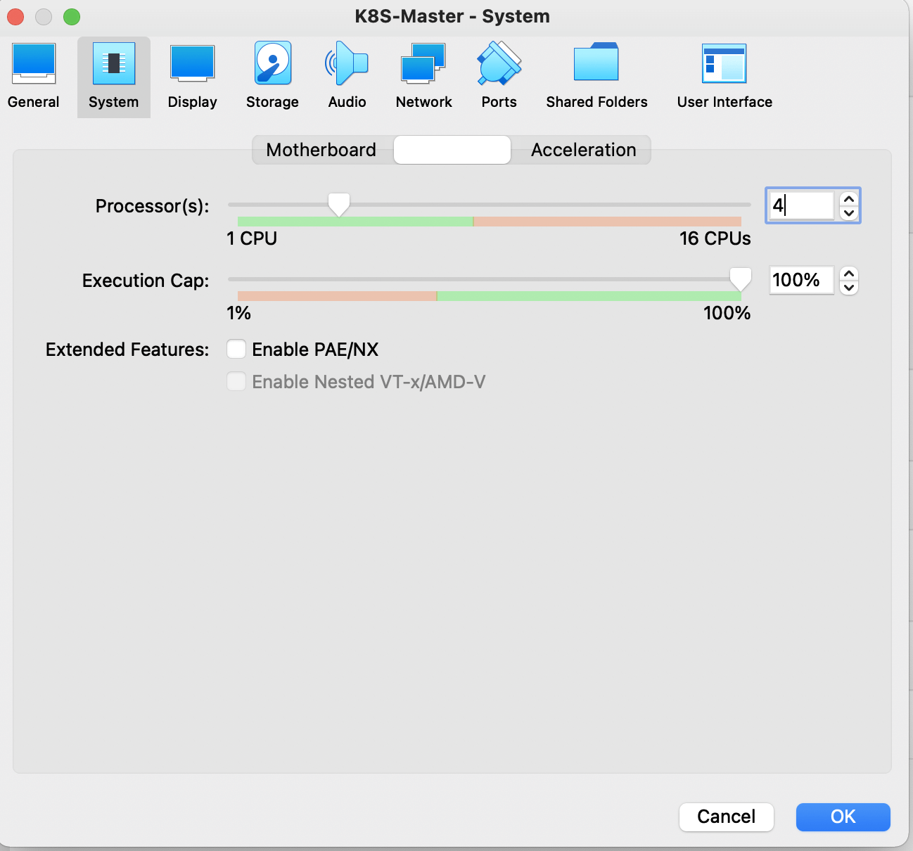 Also set the CPU to 4 for master, again 2 should be fine if you are not intending for heavy workloads