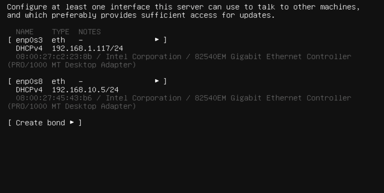 You will see the two network interfaces details which were specified earlier. The two IP addresses, one as part of the address pool of the Home router network(enp0s3) and another part of the NAT CIDR address pool we defined earlier (enp0s8)