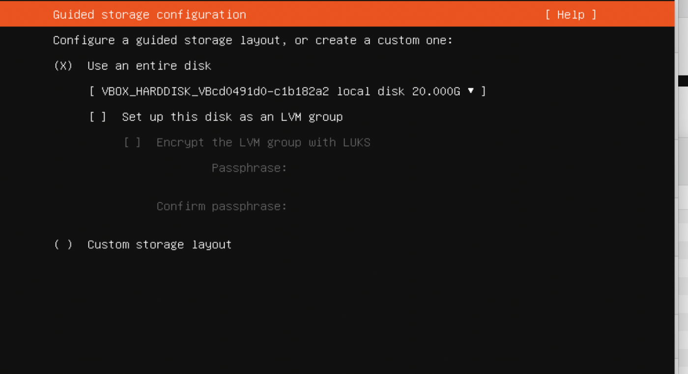 Next section remove the option Set up this disk as LVM group