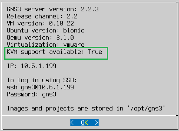 Great, now my GNS3 VM is supporting KVM I can proceed with importing appliance which need KVM support.