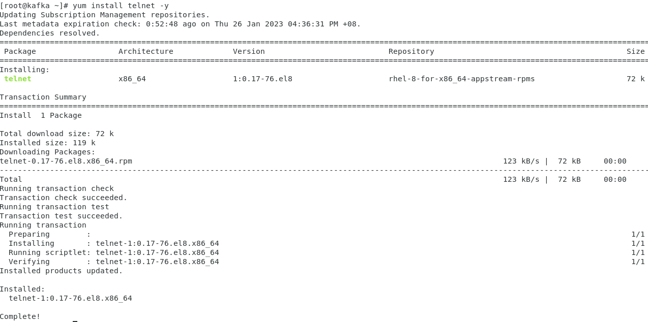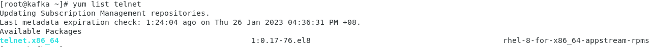 2023-01-17T21:11:19+0800 DEBUG Installed: telnet-1:0.17-76.el8.x86_64
