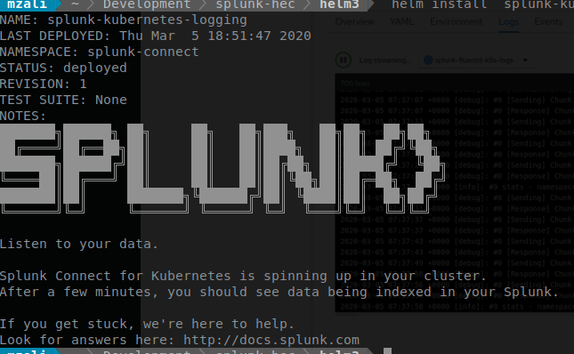 #> helm install splunk-kubernetes-logging -f splunk-hec.yaml https://github.com/splunk/splunk-connect-for-kubernetes/releases/download/1.4.0/splunk-connect-for-kubernetes-1.4.0.tgz