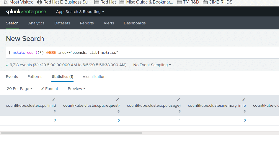 - Do index and metric search from UI and we can see data ingested and indexed properly on Splunk: