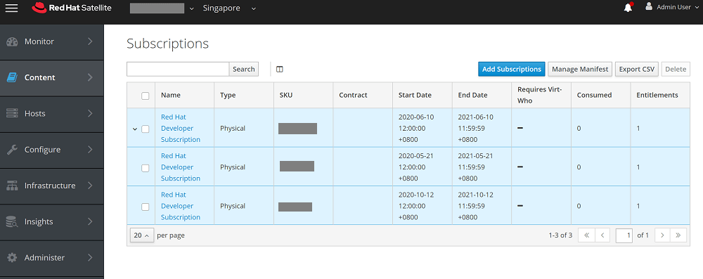 Open Satellite Server Web Console, Content -> Subscriptions -> Manage Manifest