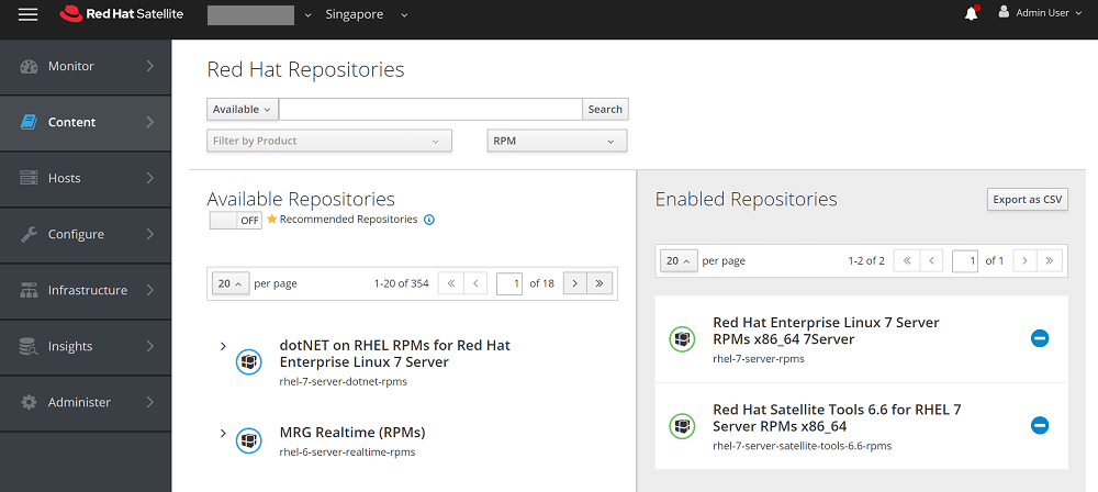 Content -> RedHat Repositories